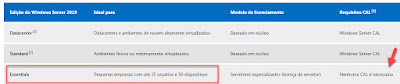 Afinal, o Windows Server Essentials tem a limitação de 25 usuários e 50 dispositivos e a grande vantagem é que você não precisa comprar CAL.